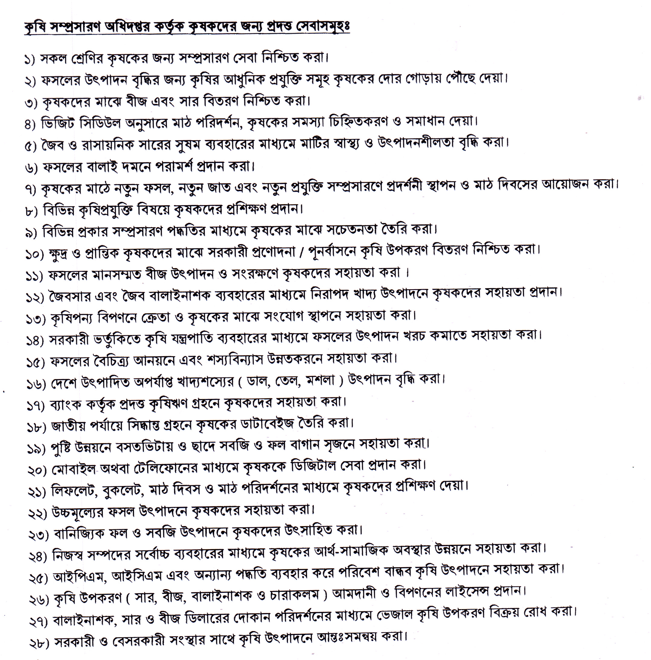 ১।সকল শ্রেনীর কৃষকের জন্য কৃষি সম্প্রসারন সহায়তা দেয়াঃ